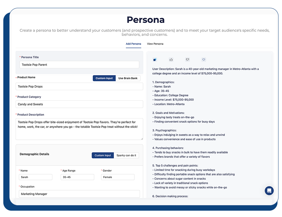 Your product description is your sales pitch—make it count. SparkyAI!™ helps you craft compelling product descriptions that resonate with your target audience, highlighting key features and benefits that drive both interest and sales. By connecting with your audience on an emotional level, you can make your products stand out in a crowded marketplace.